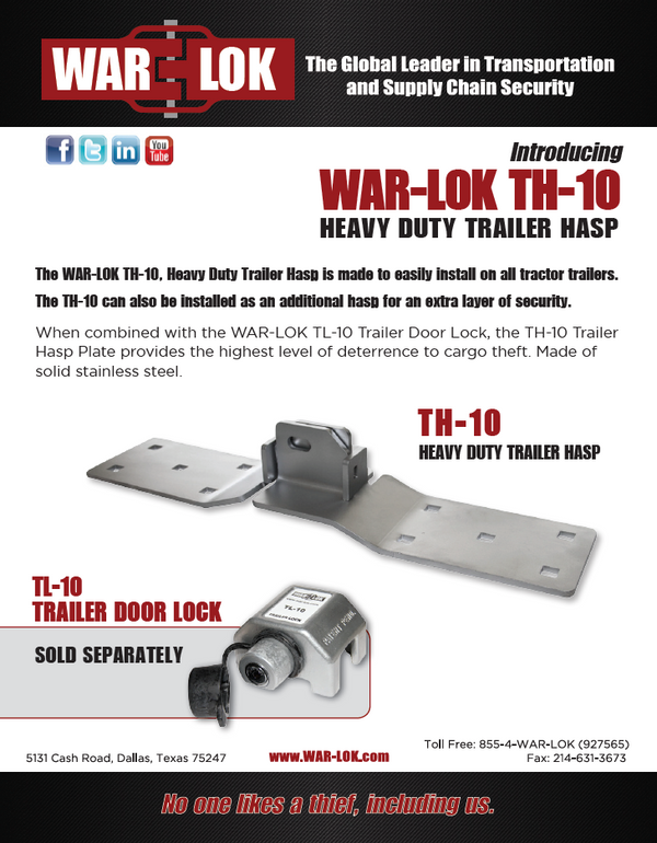 We recommend using the Trailer Door Lock Hasp, along with the WAR-LOK Trailer Door Lock, for effective cargo protection.