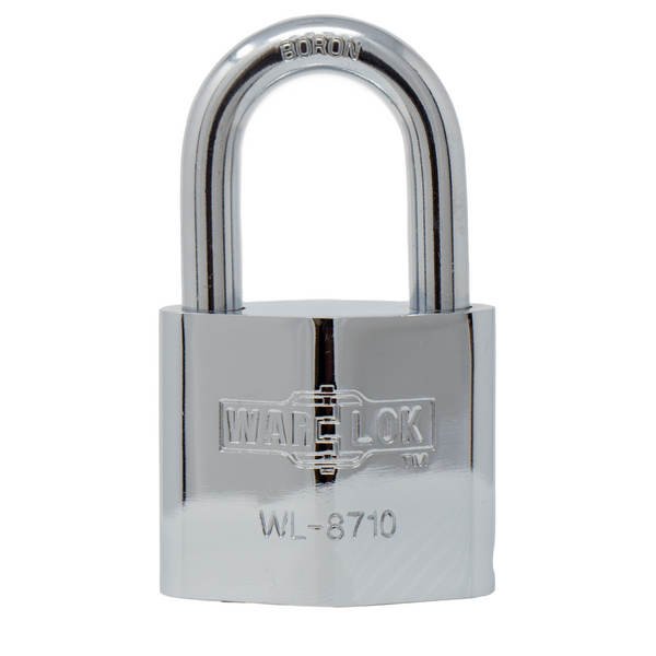 The strongest of the WAR-LOK padlock family, the WL-8710 is chrome plated and made of hardened steel but also has a BORON steel shackle. The padlock is designed to resist the most malicious devices, including bolt cutters, saws, and sledge hammers.